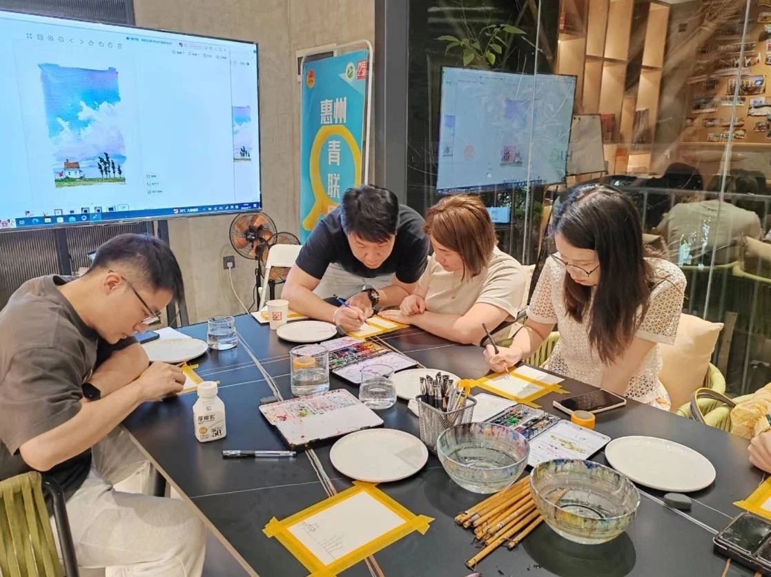 學(xué)員在惠州市“青年夜!蓖度氲乩L畫。