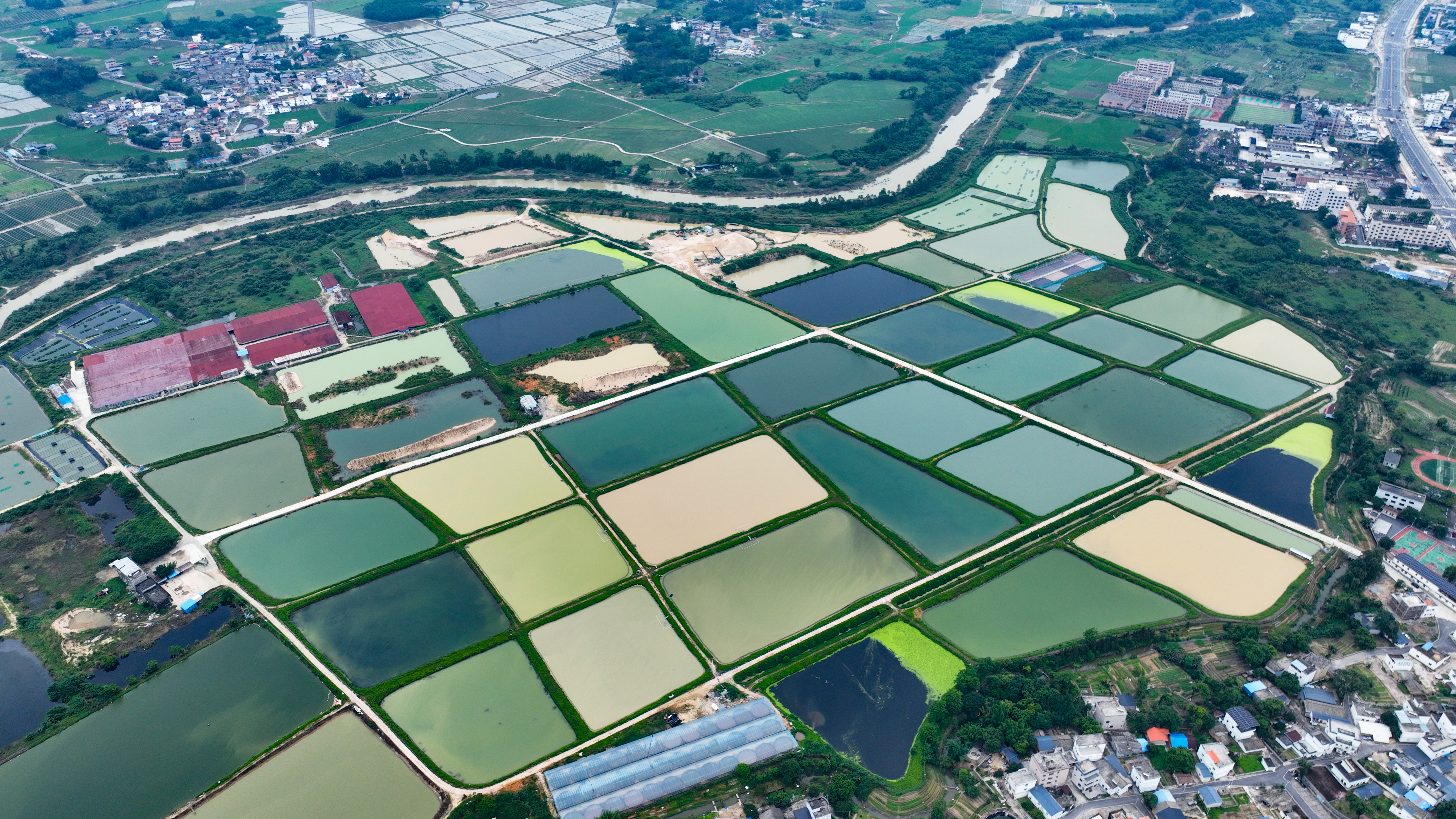 山水如畫(huà),風(fēng)景如詩(shī)。在龍門(mén)縣龍?zhí)镦?zhèn)西埔村,一望無(wú)際的田野中嵌入了一塊碩大的“眼影盤(pán)”,它由數(shù)十塊形狀各異的水塘拼接而成,在和煦陽(yáng)光的映照下淡雅明麗,仿佛期待著有人用它裝點(diǎn)山水。