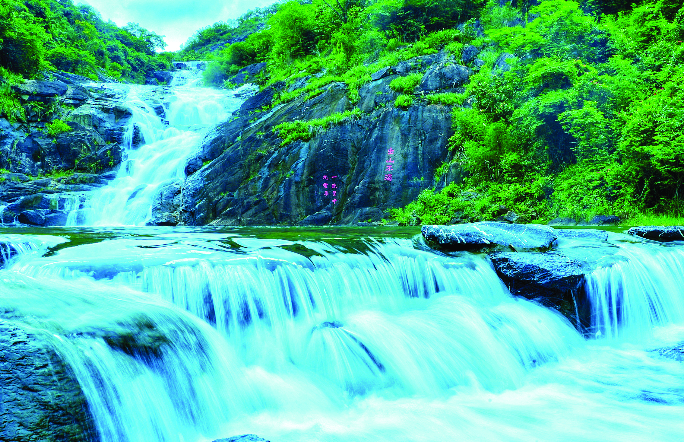 怪石嶙峋,瀑布從山頂飛流直下,水石相激,十分壯觀。近日,位于惠城區(qū)小金口的惠州湯泉九龍?zhí)镀俨嘉芏嗳笋v足欣賞。這里是蘇東坡三游之地,留下了“湯泉吐艷鏡光開,白水飛虹帶雨來”“一洗胸中九云夢(mèng)”等膾炙人口的詩詞。清朝著名詩人江逢辰在詩中稱“我聞白水山,不減匡廬瀑”,贊美這個(gè)瀑布不比廬山瀑布遜色。著名書法家秦咢生揮毫題下“千年東坡泉,嶺南第一湯”。