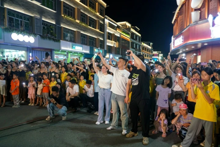 夫樂(lè)者,樂(lè)也。此次活動(dòng)創(chuàng)新采取情景音樂(lè)會(huì)的形式與觀眾進(jìn)行互動(dòng)表演,在夜幕的映襯下,歌手的傾情演唱、舞者的忘情演繹以及現(xiàn)場(chǎng)的音律律動(dòng),與燈火璀璨的豹貓?zhí)厣謪^(qū)交相輝映,音樂(lè)與“豹貓”的完美邂逅宛如畫卷映入眼簾,吸引了慕名而來(lái)的游客,一起參與了這場(chǎng)音樂(lè)盛宴,讓現(xiàn)場(chǎng)觀眾真實(shí)感受到音樂(lè)與旅游融合之美,增加游客的體驗(yàn)感,提升永漢鎮(zhèn)的知名度和美譽(yù)度。