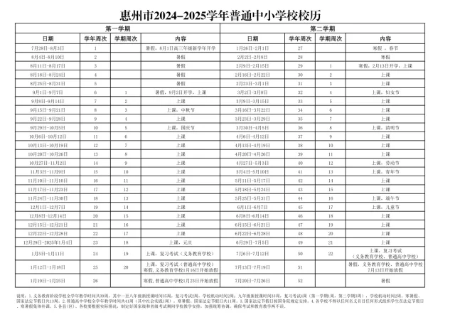 近日《惠州市2024-2025學年普通中小學校校歷》印發(fā)根據校歷安排