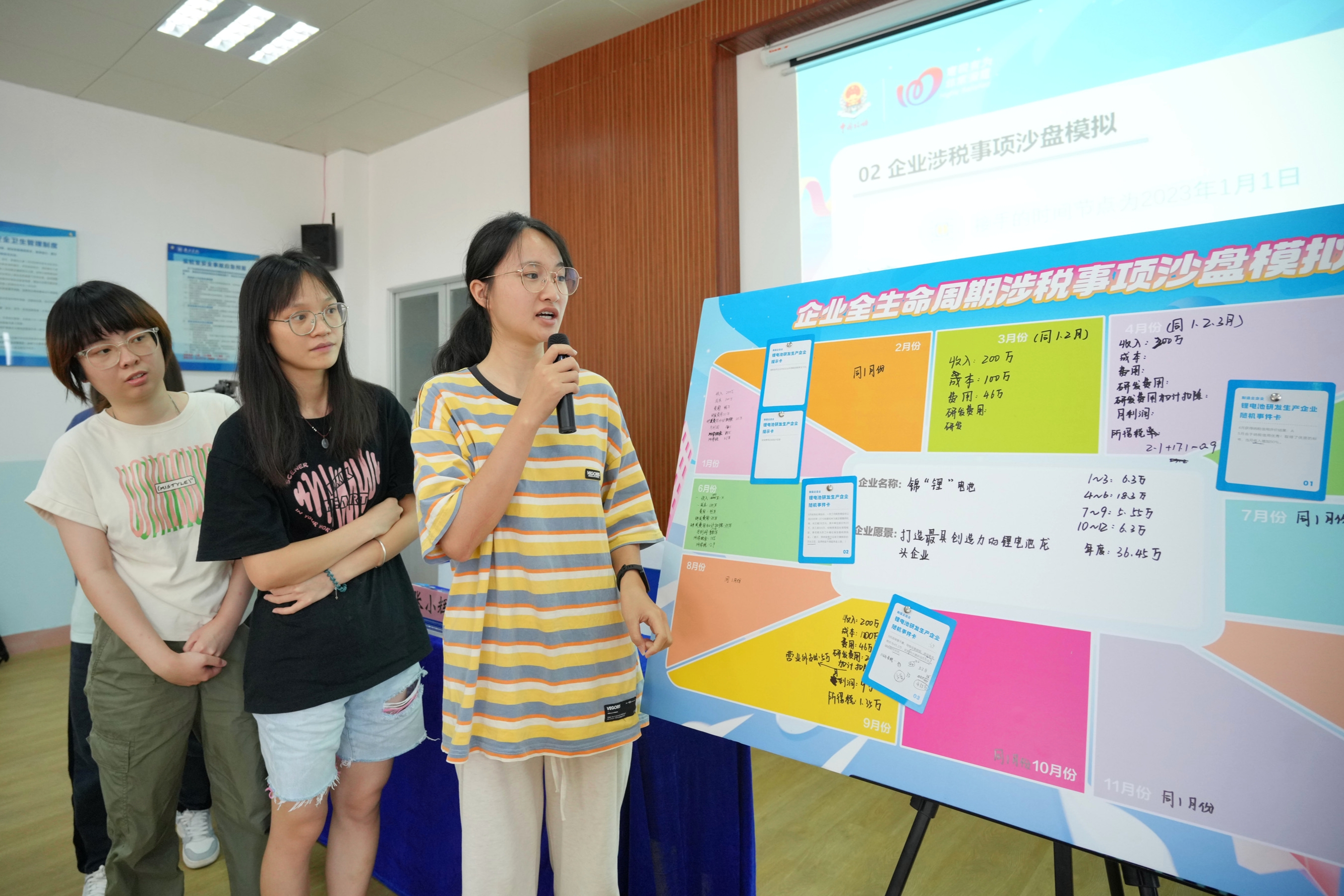“今年的納稅申報工作還未開展,須盡快著手準備!薄坝幸粋好消息,公司符合高新技術(shù)企業(yè)認定條件,已拿到證書,可以享受稅費優(yōu)惠,請根據(jù)相關(guān)政策進行納稅申報。”……當天上午,這場沉浸式的沙盤模擬演練熱鬧上演。約50名高校學生分成8組,假定經(jīng)營不同規(guī)模的鋰電池企業(yè)、小家電企業(yè)、旅游服務(wù)企業(yè)、餐飲店等。他們以團隊的形式分別體驗小規(guī)模納稅人、一般納稅人等不同創(chuàng)業(yè)情形,稅務(wù)工作人員全程參與指導(dǎo),通過稅務(wù)登記、申領(lǐng)發(fā)票、納稅申報、享受大學生就業(yè)創(chuàng)業(yè)稅收優(yōu)惠政策等一系列流程,讓學生們在沉浸式模擬企業(yè)經(jīng)營過程中,學習掌握相關(guān)稅收知識。