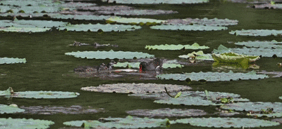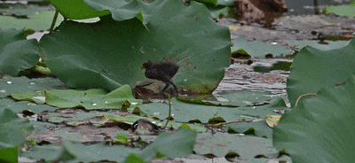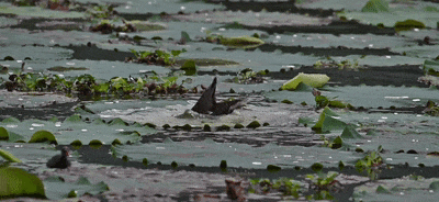 轉(zhuǎn)瞬之間,它們仿佛施展了水上輕功,輕盈而靈動地穿梭于荷葉中。