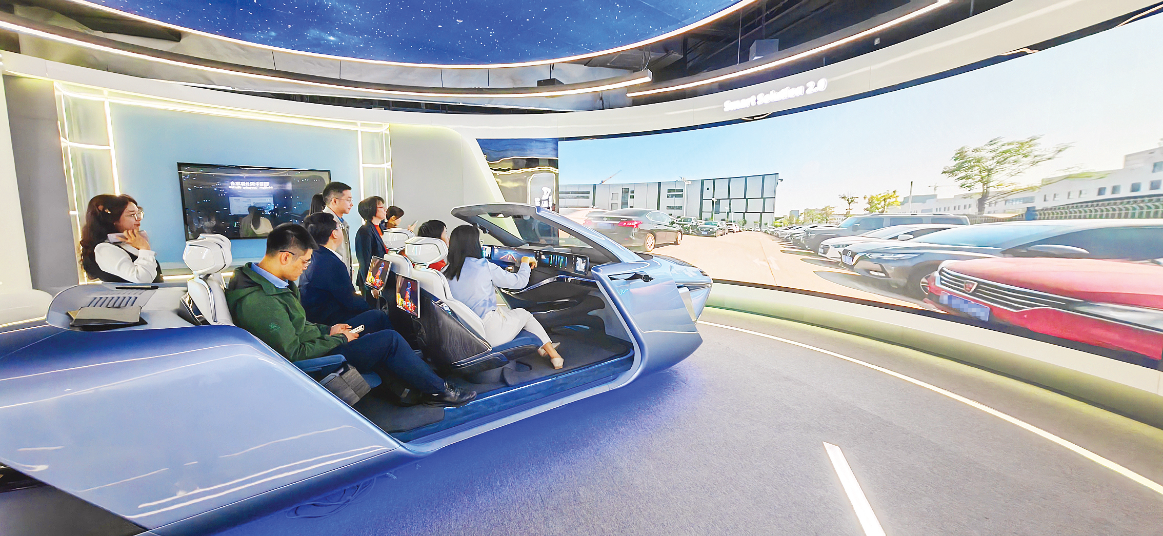 市民在德賽西威智慧出行體驗(yàn)館內(nèi)體驗(yàn);葜輺|江圖片社供圖