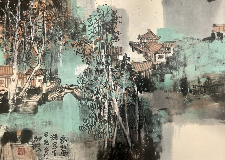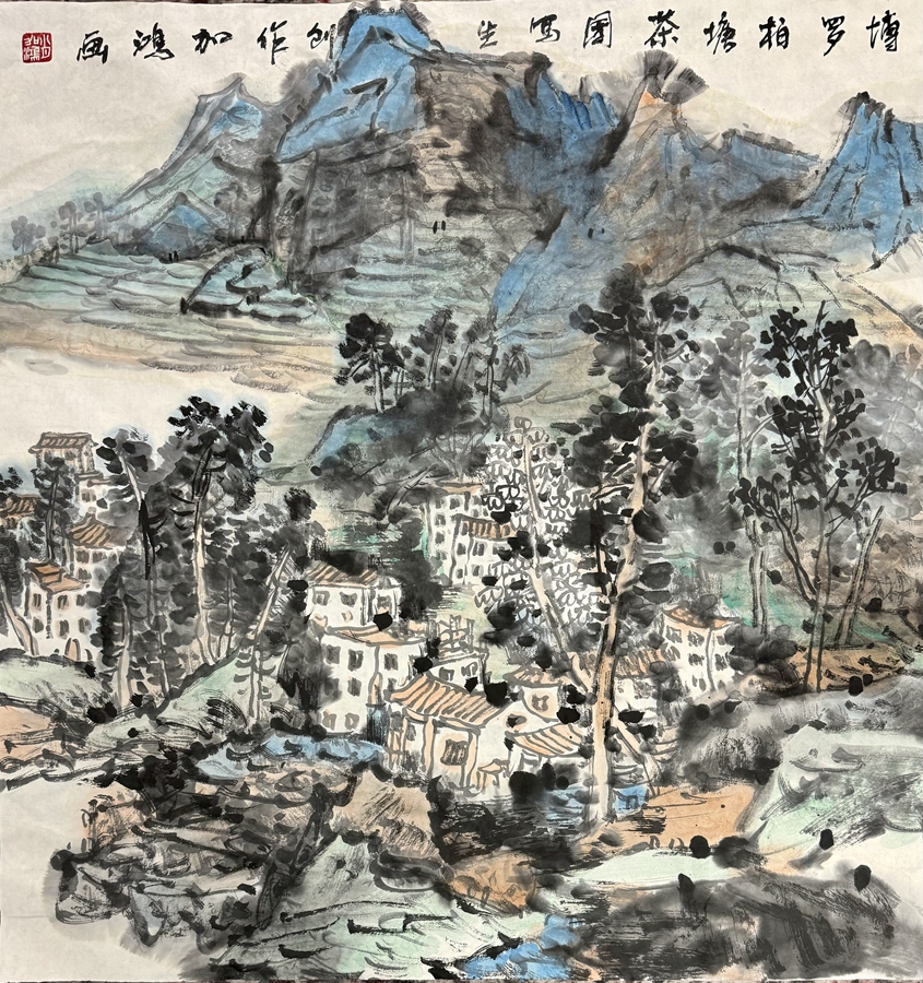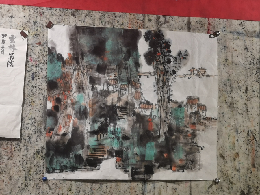 肖加鴻現(xiàn)場演示突破傳統(tǒng)的山水畫創(chuàng)作。