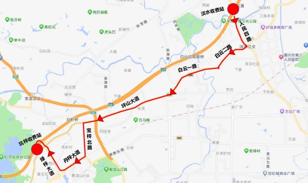 期間,原經(jīng)淡水收費(fèi)站深圳方向上行匝道上高速的車(chē)輛,可繞行人民四路→白云二路→白云一路→坪山大道→寶梓北路→丹梓大道→綠梓大道→坑梓收費(fèi)站上高速。