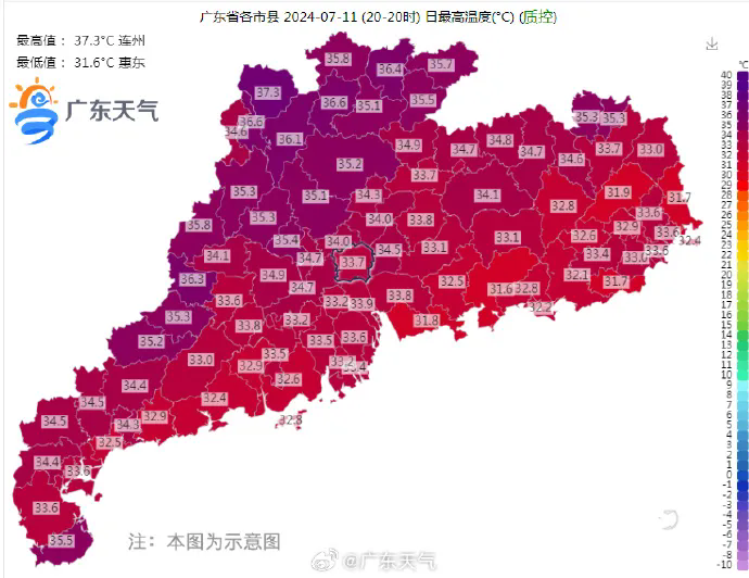 廣東最高溫都在37℃左右徘徊