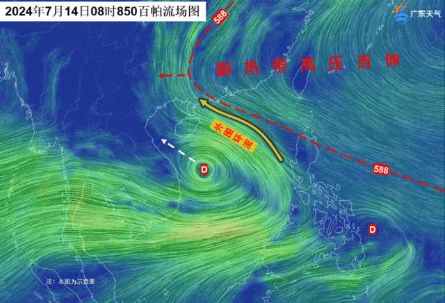 13日起,副熱帶高壓加強(qiáng)西伸,代表副高范圍的588線如同順時(shí)針旋轉(zhuǎn)的手扶電梯,南海的熱帶系統(tǒng)將隨著它趨向海南南部到越南一帶,不過熱帶系統(tǒng)發(fā)展的空間十分有限,離岸近且時(shí)間短,所以強(qiáng)度不會(huì)太強(qiáng)。