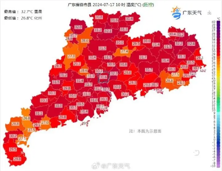 廣東最高氣溫32.7℃