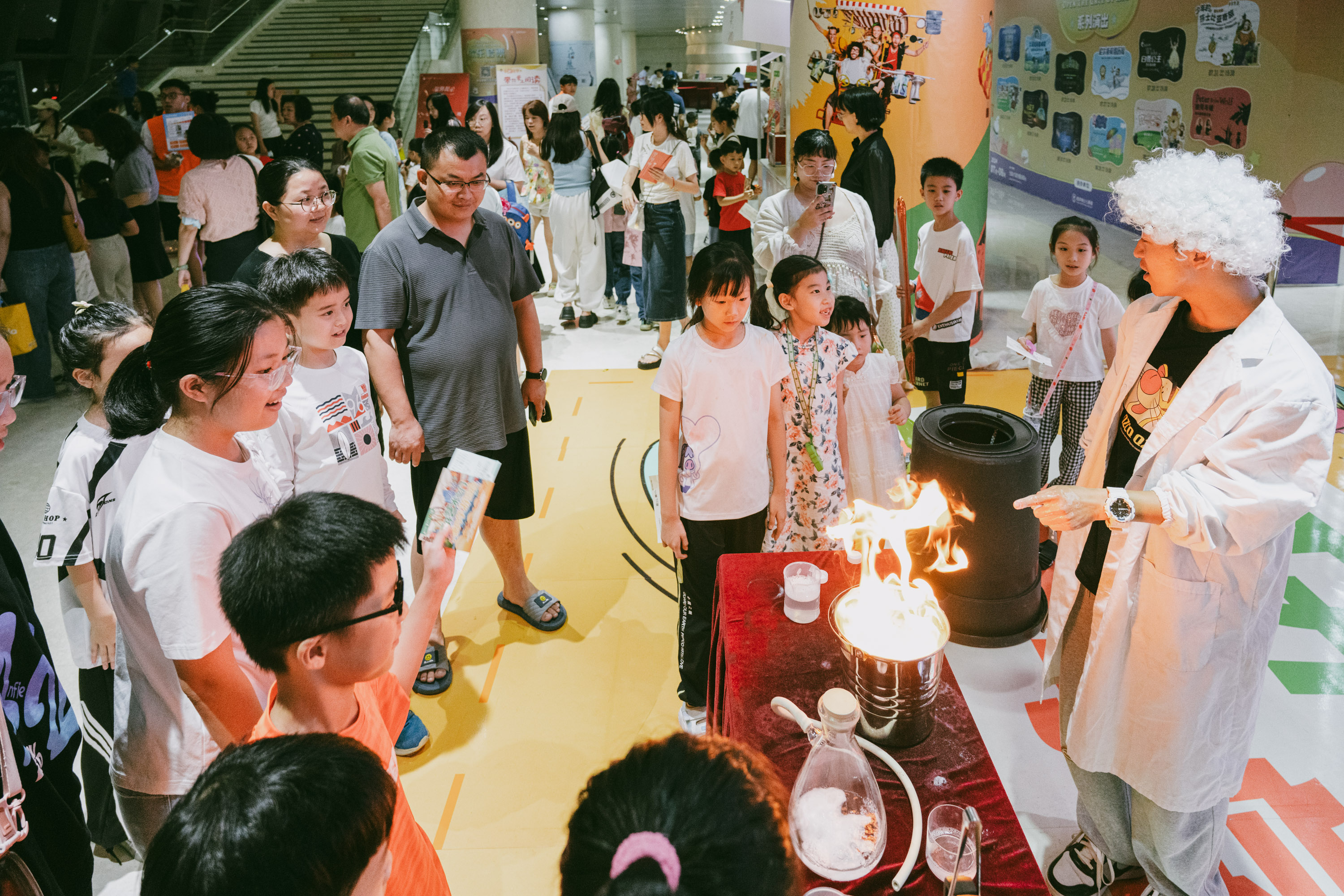 當(dāng)天,《小惠同學(xué)》讀者見面會(huì)、文藝表演、科學(xué)魔法秀等精彩節(jié)目輪番上演,如同一場場絢麗多彩的文化盛宴。小讀者們在讀者見面會(huì)上接觸報(bào)刊采編知識(shí),親身了解“小惠誕生過程”;文藝表演展現(xiàn)出小同學(xué)們的多才多藝;科學(xué)魔法秀上,神奇的科學(xué)實(shí)驗(yàn)激發(fā)同學(xué)們的探索欲。游戲互動(dòng)區(qū)更是充滿了歡聲笑語,小朋友憑《小惠同學(xué)》校園周刊上的門票或者當(dāng)晚演出門票領(lǐng)取一張游戲闖關(guān)卡。其中,“白雪紛飛”的夏日泡泡池最受小朋友歡迎,“趣味飛盤”“乒乓球”“毽步如飛”“歡樂套圈圈”“花樣蹴鞠”“丟沙包”等闖關(guān)游戲樣樣精彩,還能參與激動(dòng)人心的抽獎(jiǎng)贏取驚喜大獎(jiǎng)。