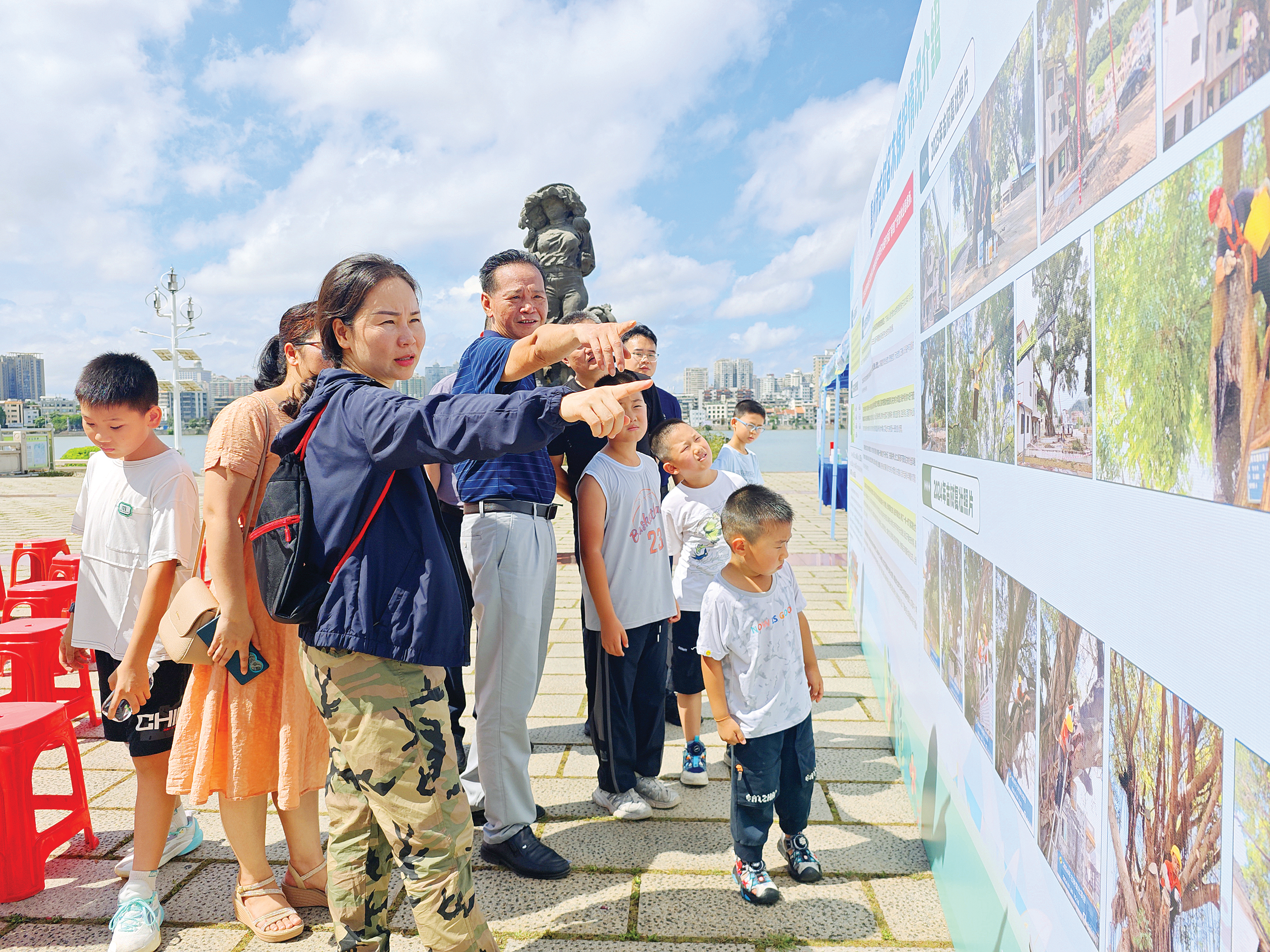 市民通過展板學(xué)習(xí)古樹名木保護(hù)知識(shí)。