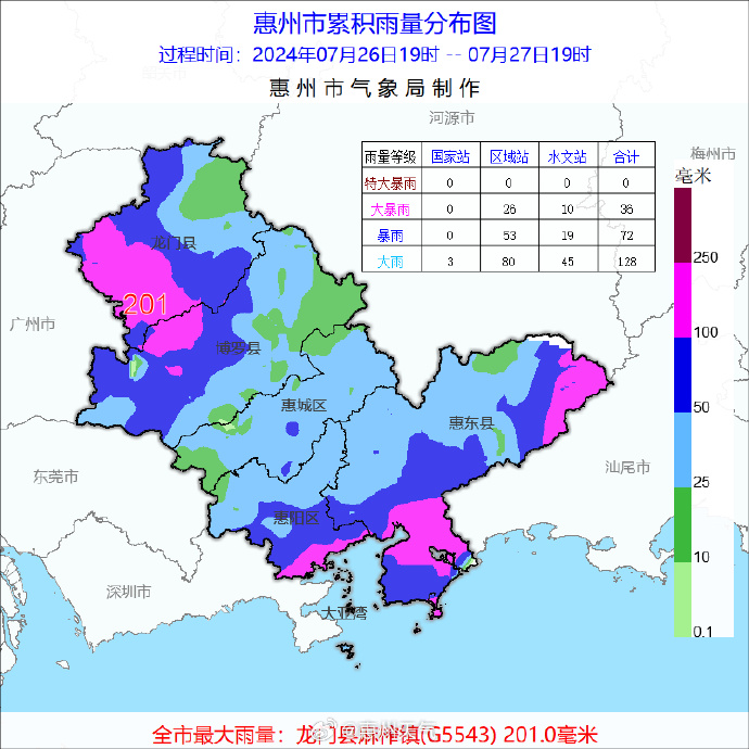 過去 24 小時,我市南部縣區(qū)和東部山區(qū)出現(xiàn)暴雨到大暴雨,其余地區(qū)中到大雨局部暴雨,局地伴有雷暴和 6~7 級短時大風(fēng),喜洲島錄得最大雨量 182.1毫米、其次為惠東高潭179.3毫米。預(yù)計,今明兩天我市仍有大雨到暴雨局部大暴雨,需繼續(xù)防御強降水和強對流天氣及其可能引發(fā)的次生災(zāi)害。