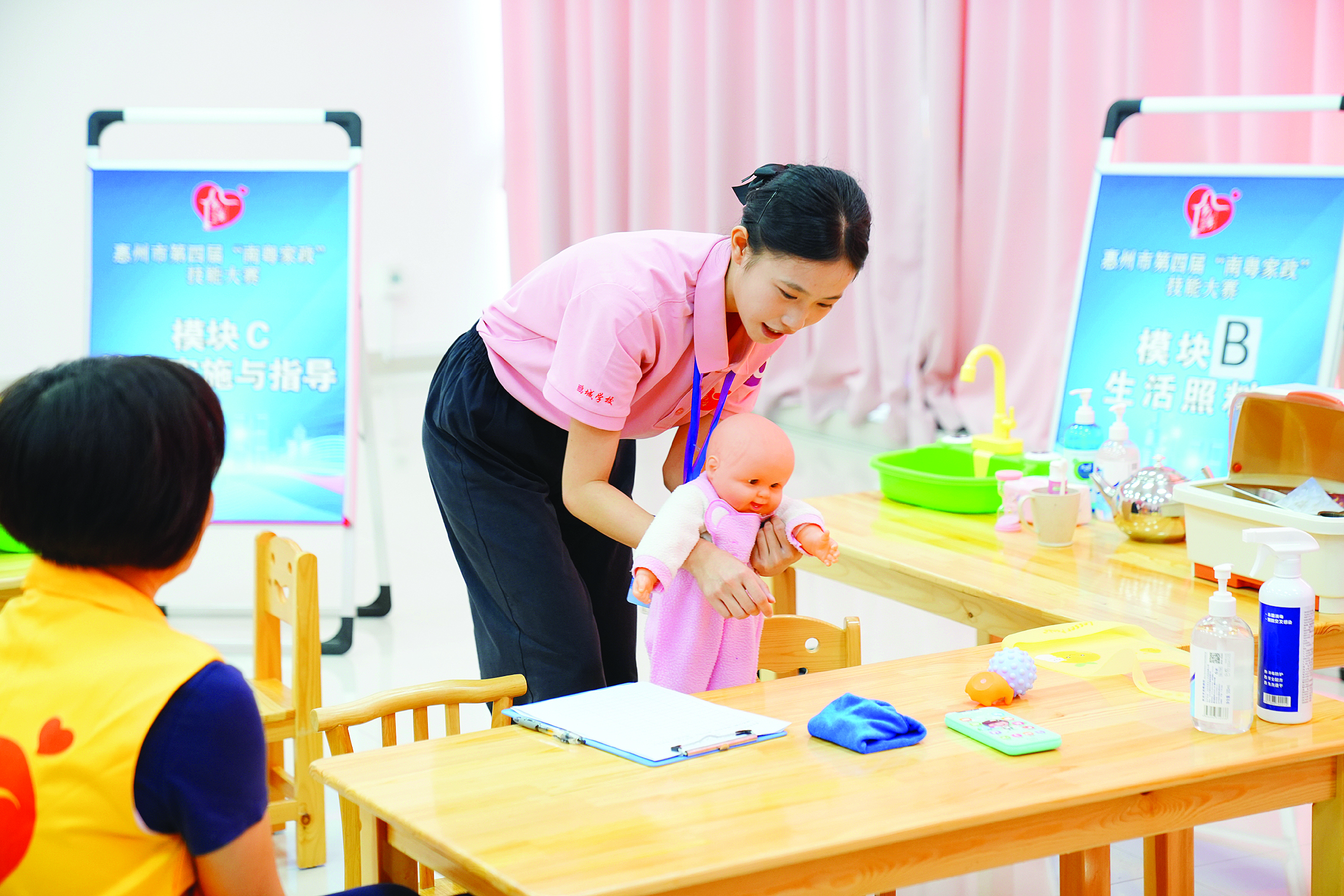 “值得一提的是,與往年相比,本次競賽男性參賽選手有所增加,尤其是養(yǎng)老護(hù)理、育嬰兩個賽項,整體參賽年齡呈現(xiàn)年輕化、參與面廣的特點,由此可見,惠州家政從業(yè)人員隊伍更有朝氣更有活力!迸砩倬暾f。