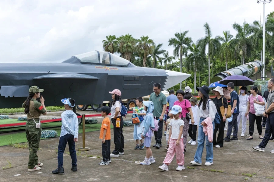 走進(jìn)潼湖軍墾基地,營(yíng)院張貼的強(qiáng)軍標(biāo)語(yǔ)、國(guó)防教育圖片燃起了大家心中的熱火。在國(guó)防軍事科技展廳,實(shí)物、展板等充分展示了我國(guó)軍種類(lèi)型、主戰(zhàn)武器裝備,黨的建軍歷史、發(fā)展歷史,航天技術(shù)的主要成就;在大型設(shè)備展區(qū),東風(fēng)21導(dǎo)彈、殲-20戰(zhàn)斗機(jī)、99A式主戰(zhàn)坦克等各類(lèi)先進(jìn)武器裝備模型讓人目不暇接。“國(guó)之重器”振奮人心,大家的民族自豪感和自信心油然而生。