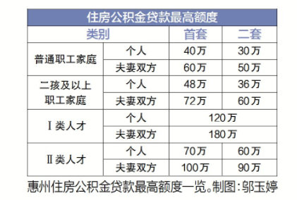 記者了解到,目前惠州住房公積金貸款,購買首套房個(gè)人住房公積金最高貸款額度40萬元,夫妻雙方最高貸款額度60萬元;購買二套房個(gè)人最高貸款額度30萬元,夫妻雙方最高貸款額度50萬元。生育二孩及以上的職工家庭購買自住住房申請(qǐng)個(gè)人住房公積金貸款的,最高貸款額度在基礎(chǔ)上上浮20%。而人才使用住房公積金購房,貸款最高額度為180萬元。