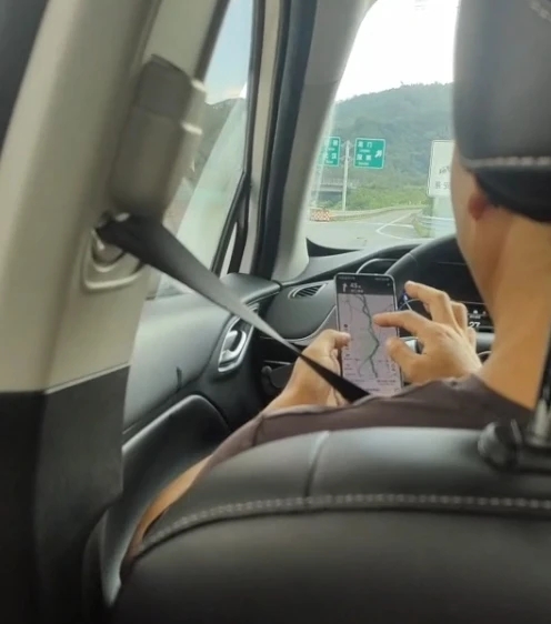 在高速公路上,網(wǎng)約車司機(jī)一邊開車一邊使用手機(jī)看導(dǎo)航,嚇壞了乘客。