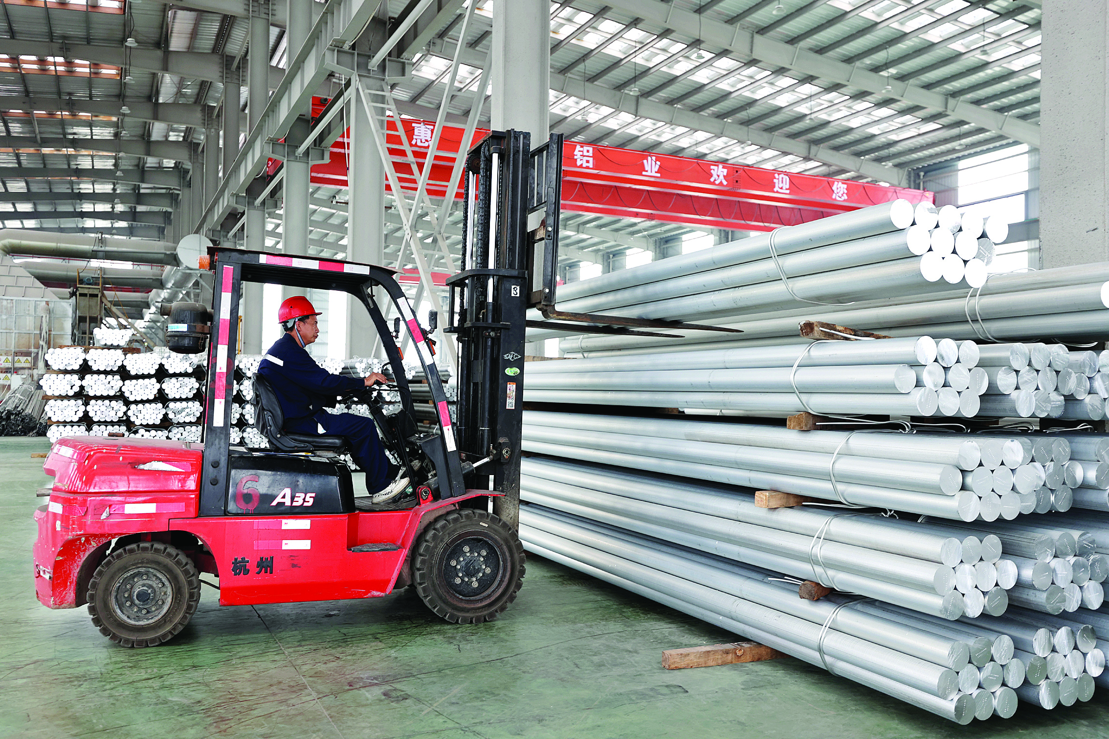 90%的鋁液+10%的再生鋁,經(jīng)過高溫熔煉、深井鑄造、鋸切處理等工序后,一根鋁棒就生成了。在貴州惠興再生資源科技有限公司生產(chǎn)車間內(nèi),工作人員用叉車將一捆捆鋁棒裝車,準(zhǔn)備發(fā)往廣東。