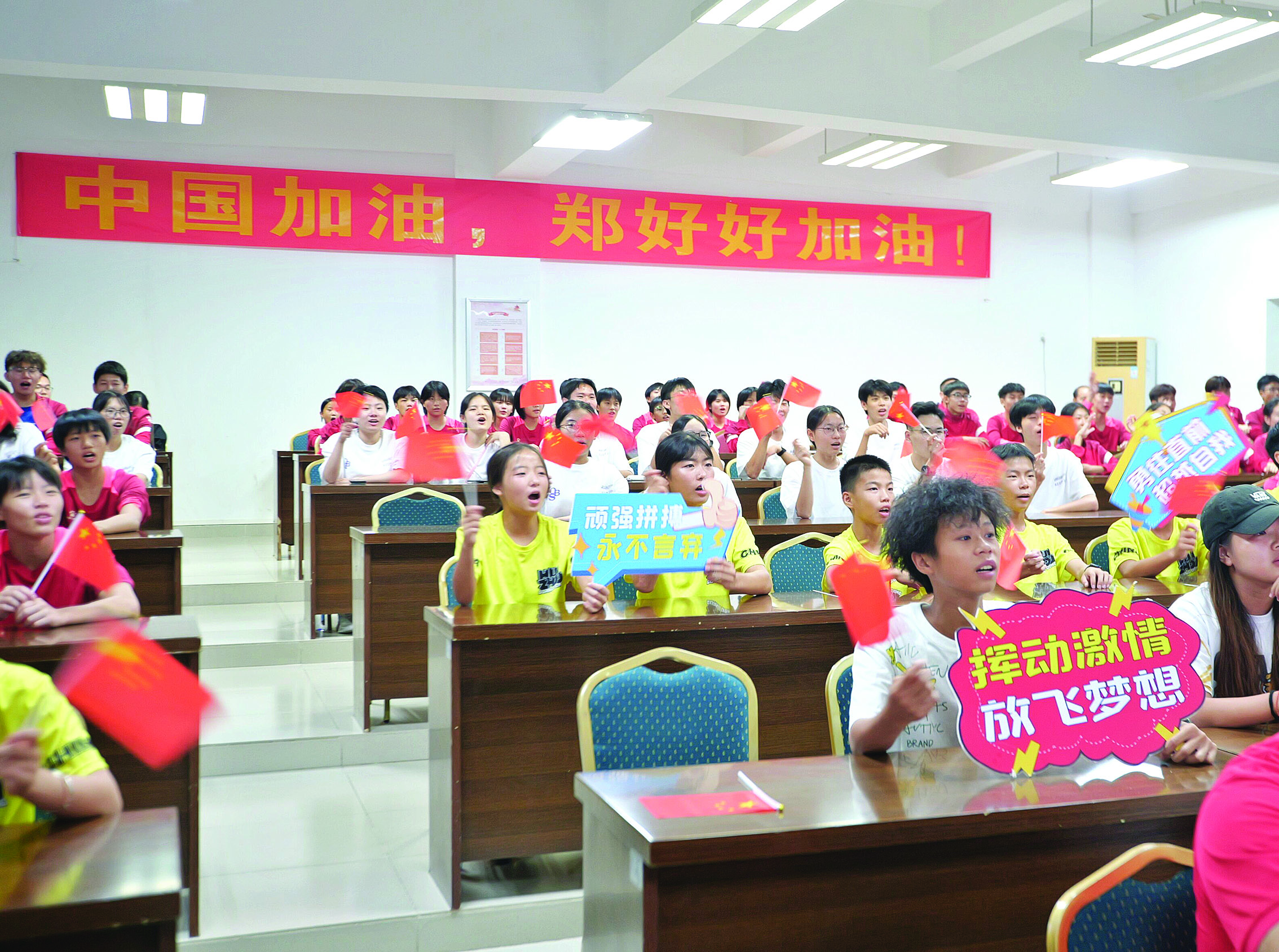 昨晚,市文廣旅體局在市體育運動學校組織集中觀賽,為鄭好好加油。 惠州日報記者黃鑫威 攝