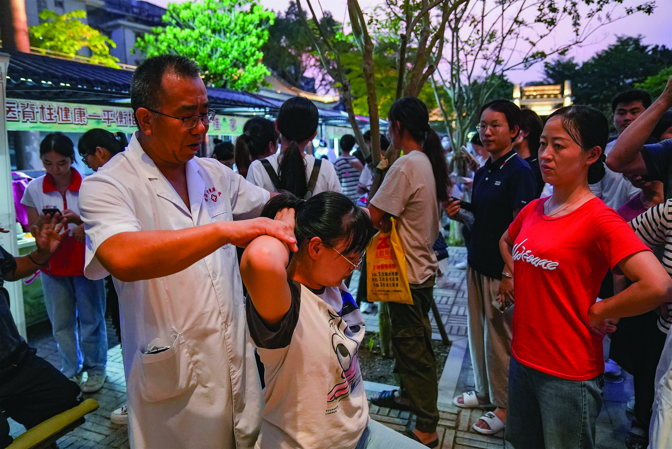 記者留意到,推拿、針灸、拔罐、刮痧等傳統(tǒng)中醫(yī)項目特別受歡迎,幾乎每個攤位前都排起了長龍;葜菔薪】滴幕瘏f(xié)會的中醫(yī)師黃選蓁一直忙個不停,為市民辨癥針灸!拔抑岸际窃诎滋扉_展義診的,沒想到夜晚也這么火爆!秉S選蓁說,這說明越來越多人認(rèn)可、信賴中醫(yī),“‘健康夜市’不僅可以讓市民直接體驗中醫(yī)傳統(tǒng)項目,也是傳播和弘揚(yáng)中醫(yī)藥文化的新載體。”