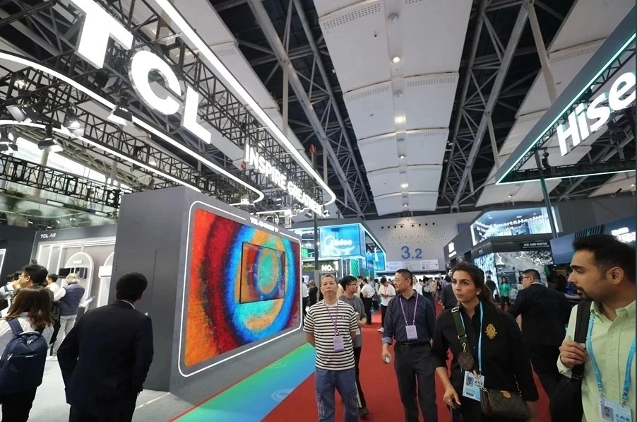 第135屆廣交會上TCL展區(qū)吸引眾多海內(nèi)外客商駐足。