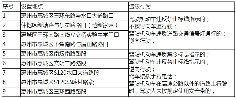 抓拍逆行、不按導(dǎo)向車道行駛、駕車接撥手持電話……連日來(lái),惠州交警多次發(fā)布《關(guān)于再次公布固定式交通技術(shù)監(jiān)控設(shè)備地點(diǎn)的公告》,對(duì)位于市區(qū)三環(huán)東路與水口大道路口、南壇南路等12個(gè)路段的固定式交通技術(shù)監(jiān)控設(shè)備(俗稱“電子警察”設(shè)備)設(shè)置地點(diǎn)向社會(huì)公布,希望廣大車主駕車注意遵守交通秩序,安全文明出行。
