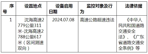 其中位于沈海高速2779公里311米-沈海高速2788公里617米(區(qū)間測(cè)速雙向)的“電子警察”設(shè)備已于7月8日啟用,主要應(yīng)用抓拍高速公路超速違法行為。