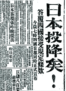 1945年8月15日,《大公報(bào)》報(bào)道“日本投降矣!”。