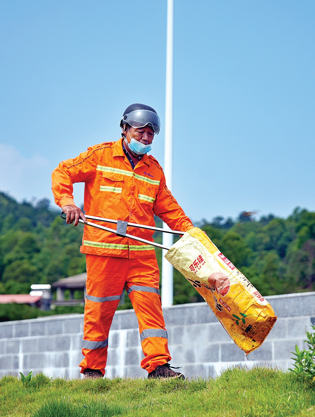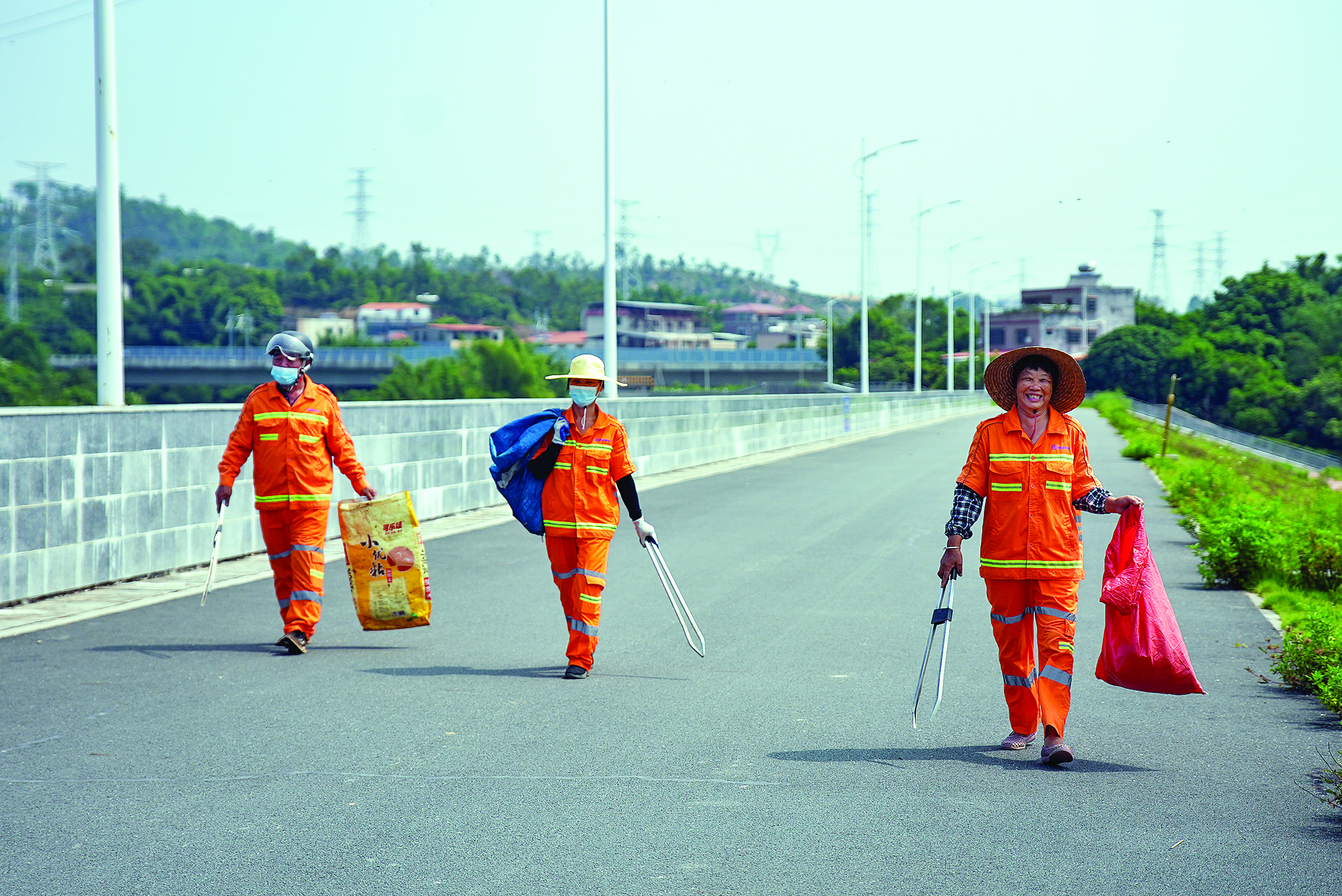 環(huán)衛(wèi)工人在撿拾垃圾;葜萑請笥浾吡_劍業(yè) 攝