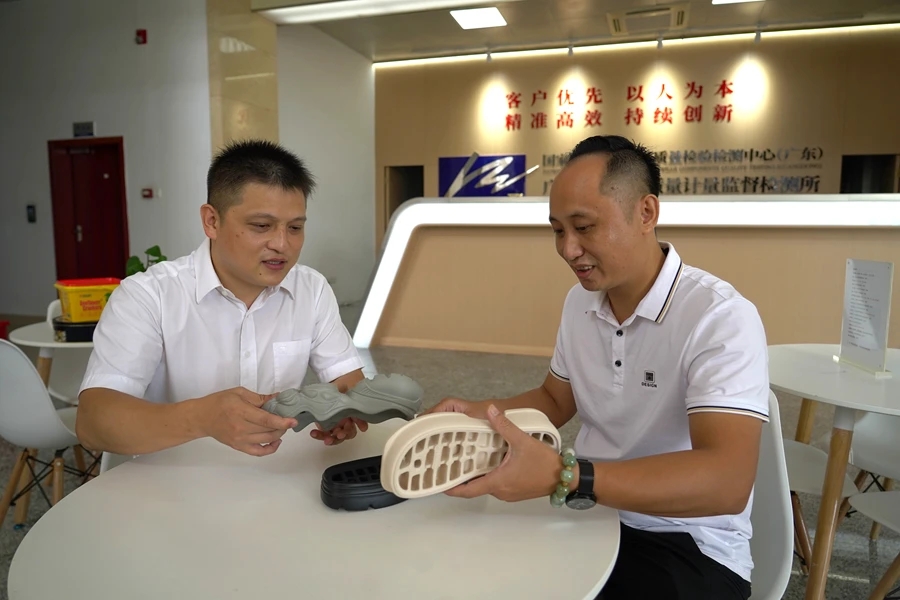 這是一家2022年才在惠東開業(yè)的鞋廠,引進了溫州一家鞋企的橡塑發(fā)泡材料用于生產坡跟女鞋等,相比傳統(tǒng)的厚鞋底,這種材料制作的鞋底輕便不累腳,可以把女鞋穿出運動鞋的腳感,廣受消費者青睞!拔覀兊目蛻魧ζ焚|管控要求高,要出一份檢測報告給他,主要檢測耐磨性和環(huán)保相關指標!痹摴靖笨偨浝睃S惠標表示,在國家鞋檢中心投用前,公司要檢測得把產品送到廣州或東莞,檢測一次要花幾百到上千元,時間和資金成本不少,家門口有了國家鞋檢中心后,不僅方便還免費,幫助企業(yè)降本提質。