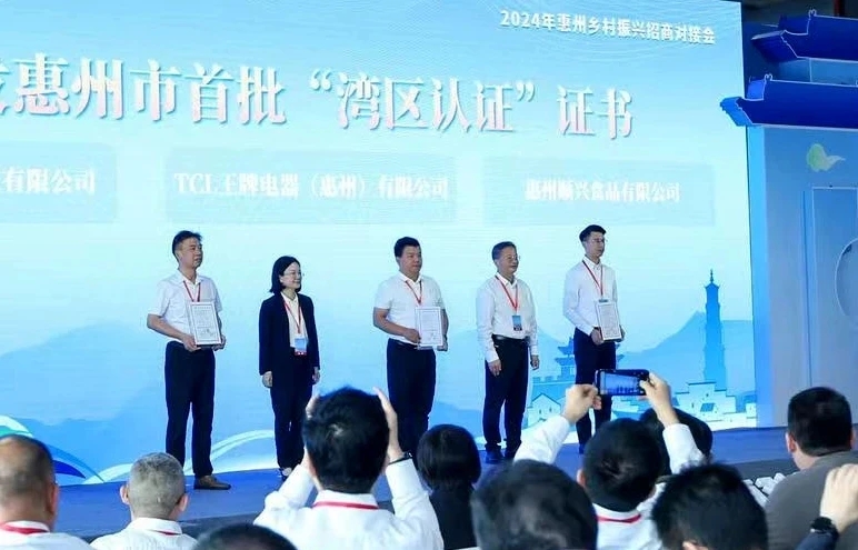 惠州市首批獲得“灣區(qū)認證”的3家企業(yè)獲頒證書;葜輺|江圖片社供圖