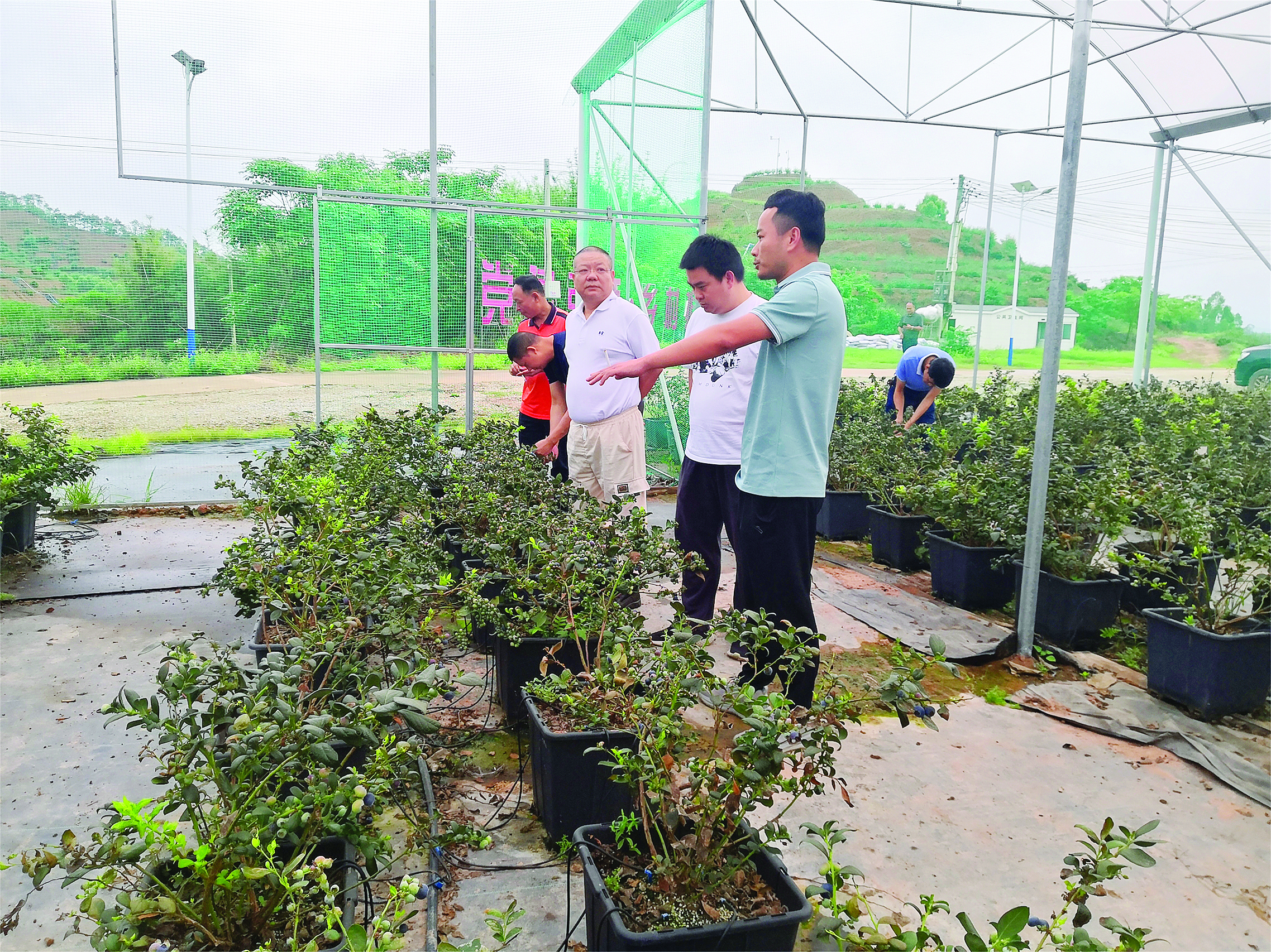 2024年4月,駐觀音閣鎮(zhèn)幫鎮(zhèn)扶村工作隊在天藝藍莓莊園了解藍莓掛果情況。