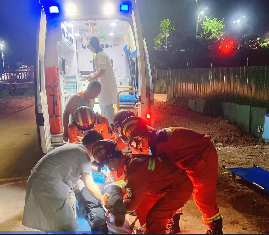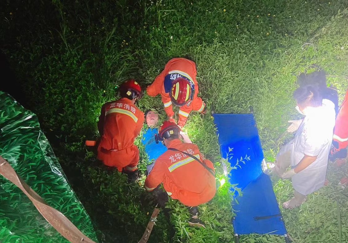 到場后,消防救援人員發(fā)現(xiàn)一輛白色轎車沖出人行道,懸掛在人行道與田地間,滿身酒氣男子躺在草叢上。消防員確認無其他被困人員后,立即用擔架將男子固定后抬至路面移送醫(yī)護人員。