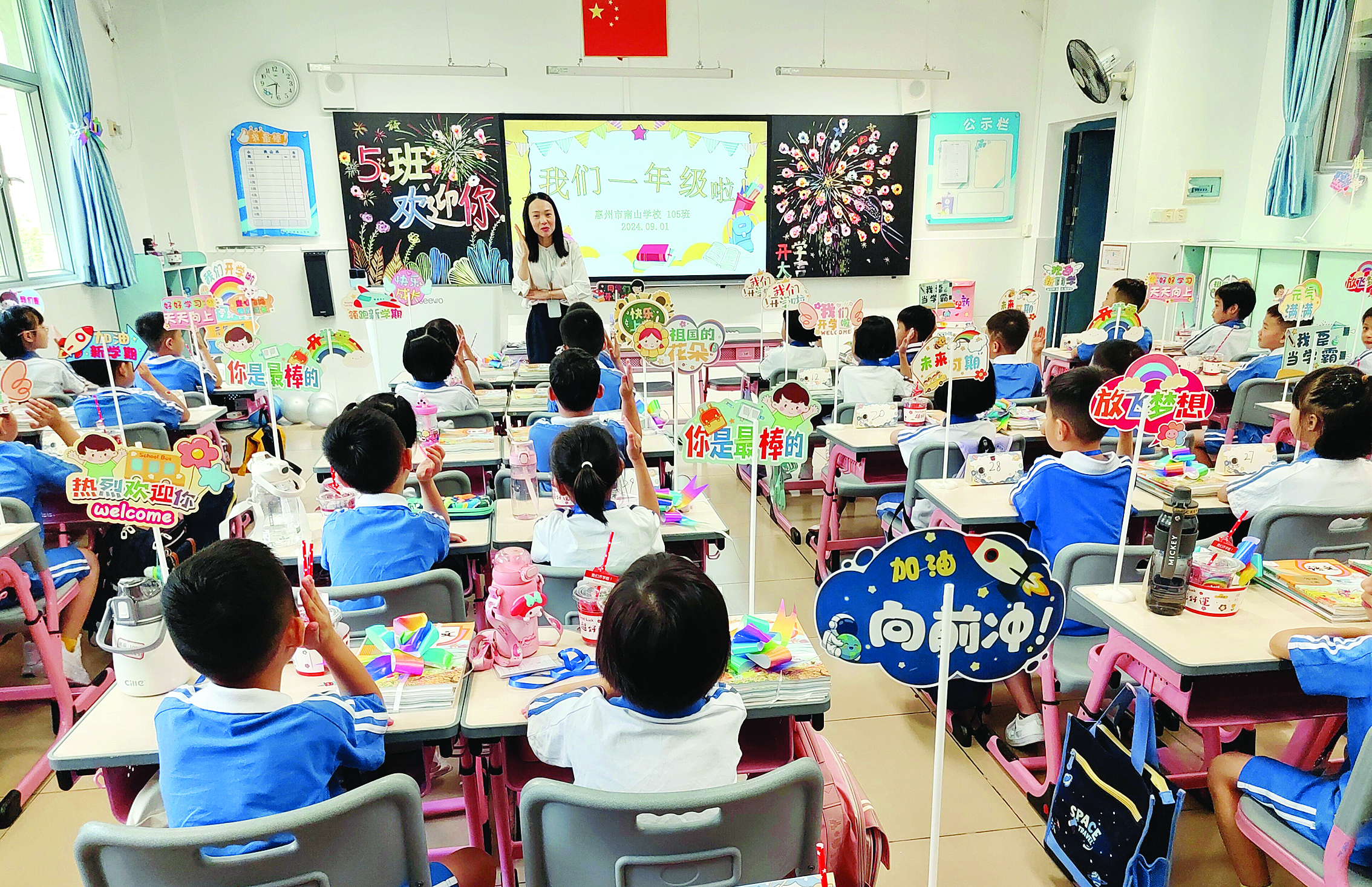開(kāi)學(xué)第一天,惠州市南山學(xué)校迎新儀式感滿(mǎn)滿(mǎn)。 惠州日?qǐng)?bào)記者葉麗莎 通訊員梁勇 攝
