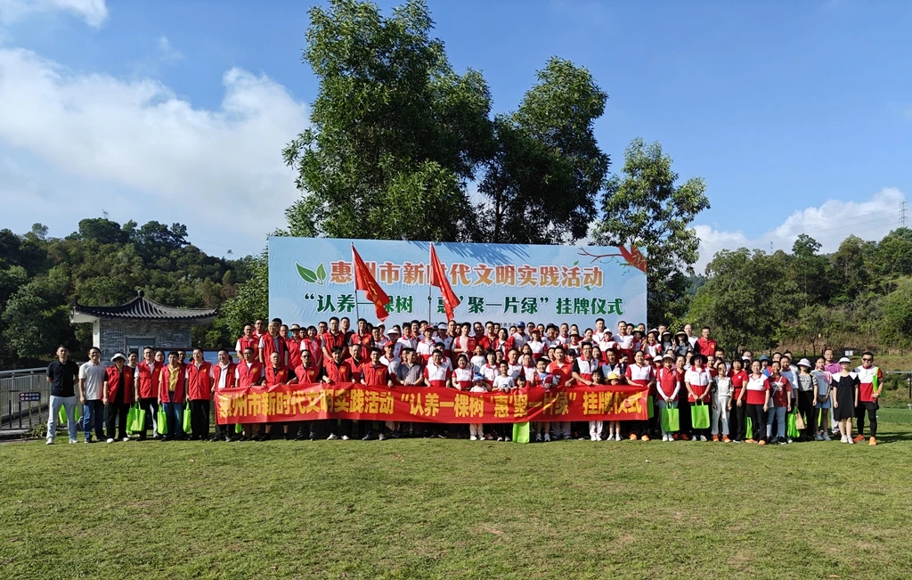 9月1日,惠州市新時代文明實(shí)踐活動 “認(rèn)養(yǎng)一棵樹 ‘惠’聚一片綠”掛牌儀式在市區(qū)桃花源景區(qū)舉行,吸引了約200人參加。