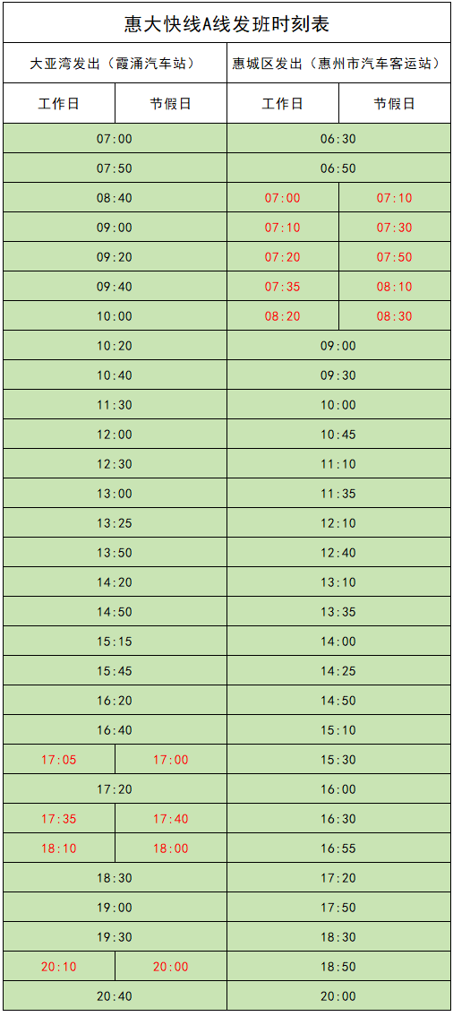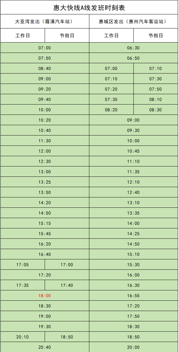 惠大快線A線(霞涌汽車站——惠州市汽車客運站)