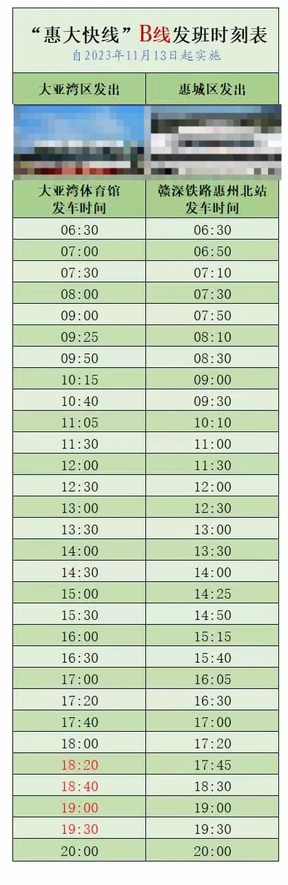 惠大快線B線(大亞灣體育館——贛深鐵路惠州北站)