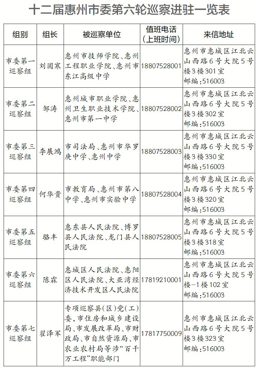 據(jù)了解,本輪巡察時間為8月下旬至12月上旬。各巡察組巡察期間設專門值班電話,并公開來信地址,主要受理反映被巡察黨組織領導班子及其成員、下一級黨組織領導班子主要負責人和重要崗位領導干部問題的來信來電來訪。巡察組接受信訪時間截止到2024年12月2日。