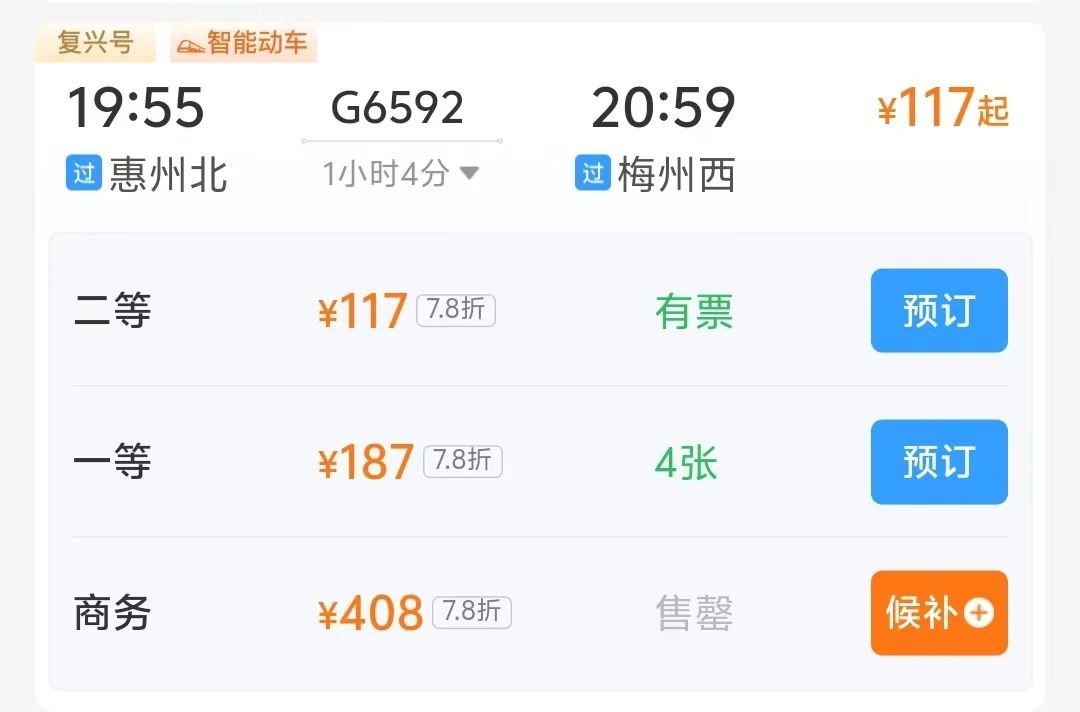 為滿足旅客不同出行需求,龍龍高鐵梅龍段實(shí)施靈活折扣、差異化的市場化票價(jià)機(jī)制,為旅客出行提供更多選擇,具體票價(jià)信息可通過鐵路12306查詢。