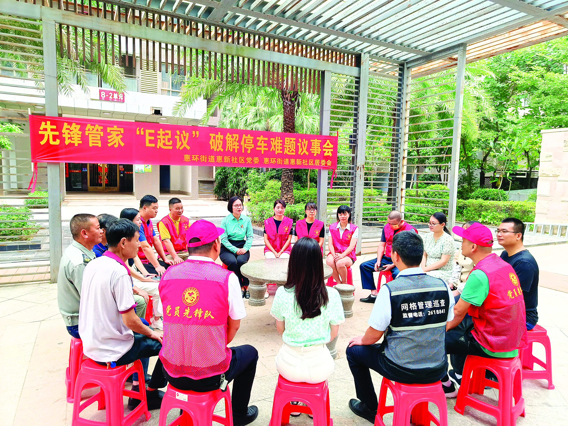 仲愷惠環(huán)惠新社區(qū)“先鋒管家”議事會現(xiàn)場,社區(qū)干部、網(wǎng)格員、居民等一起商量社區(qū)治理工作。 圖片由惠新社區(qū)提供