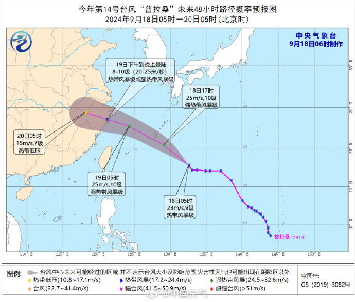 14號(hào)臺(tái)風(fēng)“普拉桑”今天晚上移入東海東部海面,