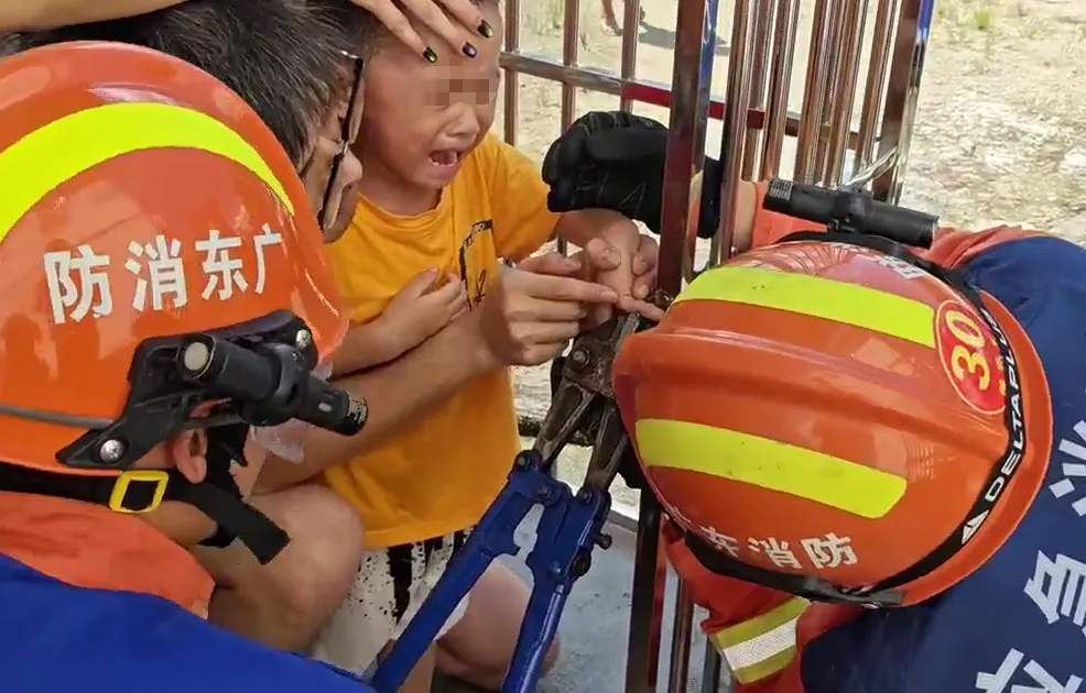 現(xiàn)場(chǎng)消防員發(fā)現(xiàn),男童手指卡在金屬鎖孔內(nèi),被不銹鋼外殼完全包裹,外側(cè)無(wú)法觀察受傷情況,給救援帶來(lái)了一定難度。