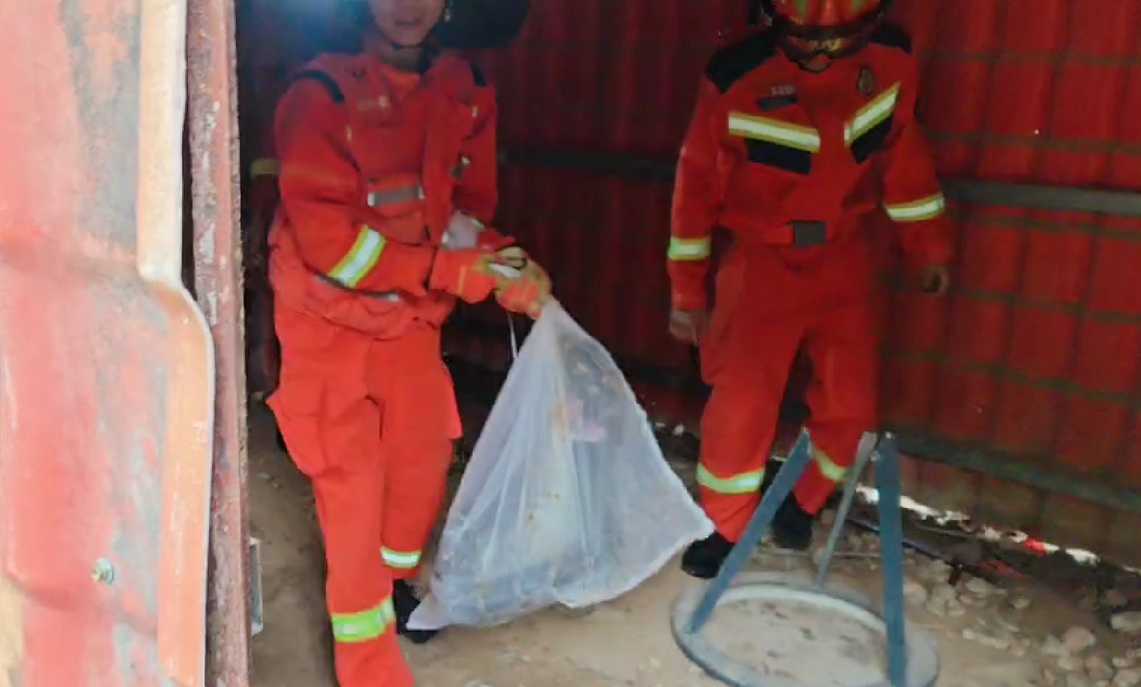 到達現(xiàn)場后,報警人將消防員帶到飯店后方的家禽圈養(yǎng)場,現(xiàn)場看到蟒蛇已經(jīng)將4只母雞咬死,其中一只已經(jīng)被蟒蛇吞下。