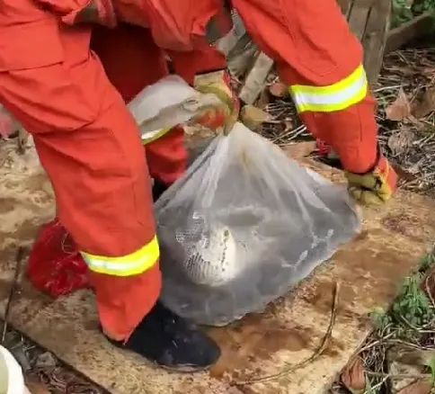 抓捕過程中蟒蛇朝消防員張開“血盆大口”示警,