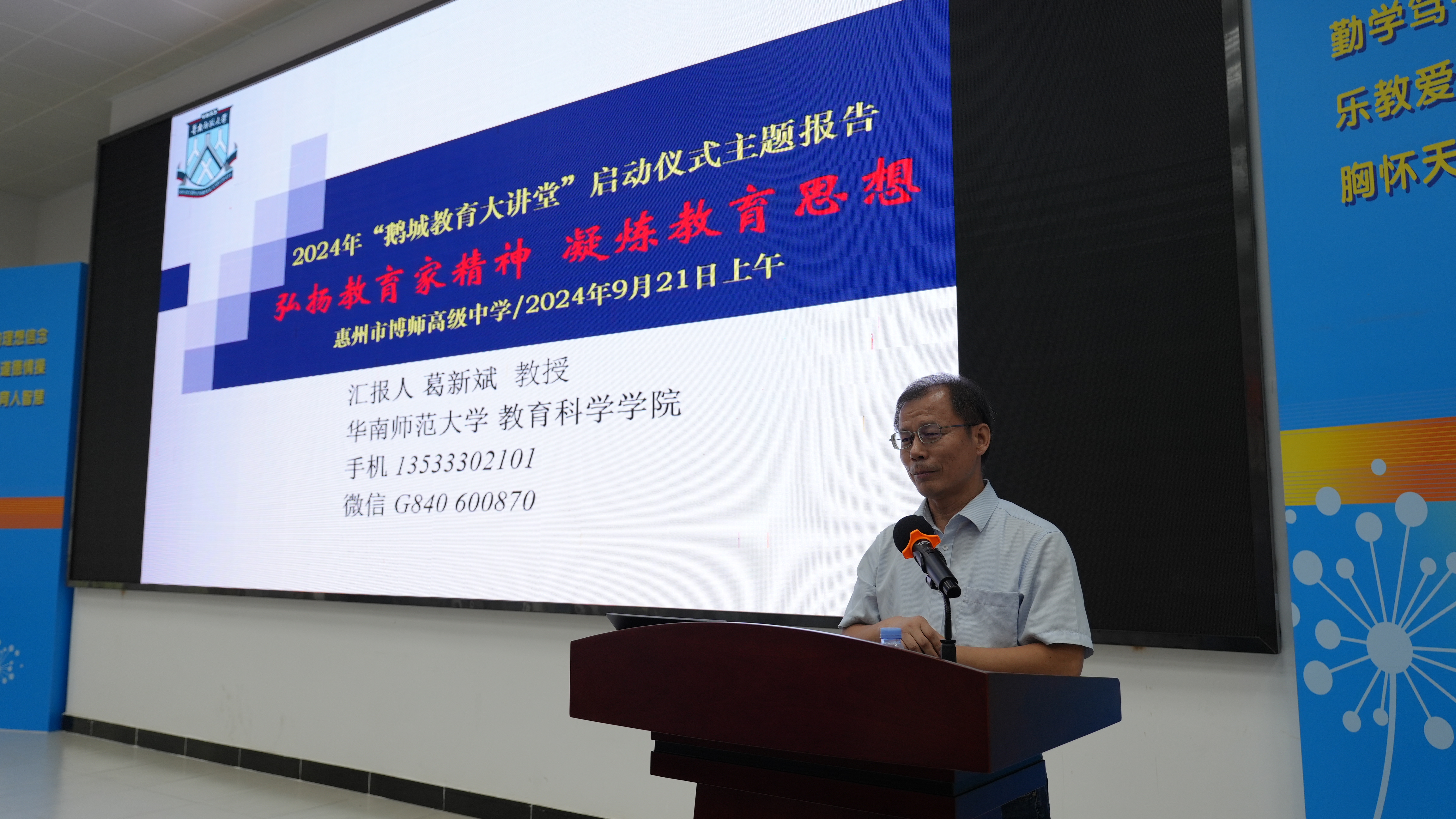 9月21日,“鵝城教育大講堂”首場主題報(bào)告會(huì)在博羅縣博師高級(jí)中學(xué)舉行,四位來自高校的專家教授、一線的優(yōu)秀校長和教師分別作主題報(bào)告和主題演講,共同搭建助推區(qū)域基礎(chǔ)教育高質(zhì)量發(fā)展的對(duì)話平臺(tái)。