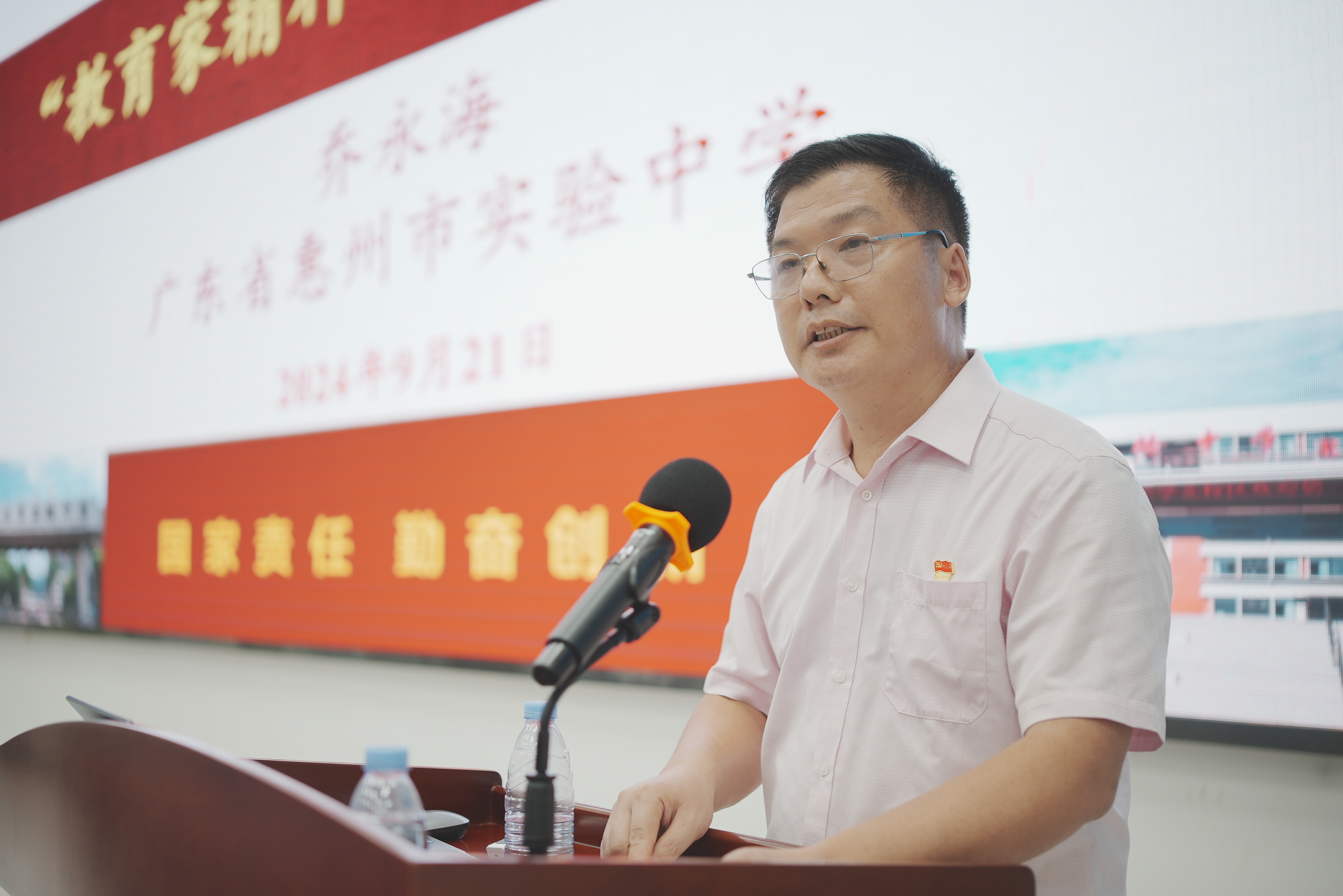 惠州市第一季度師德人物、惠州市實(shí)驗(yàn)中學(xué)專職教師喬永海的演講主題為:“教育家精神”助力教師成長。