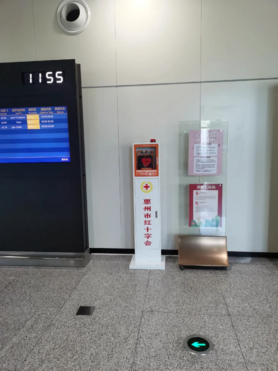 惠州平潭機(jī)場(chǎng)T2航站樓里的AED。