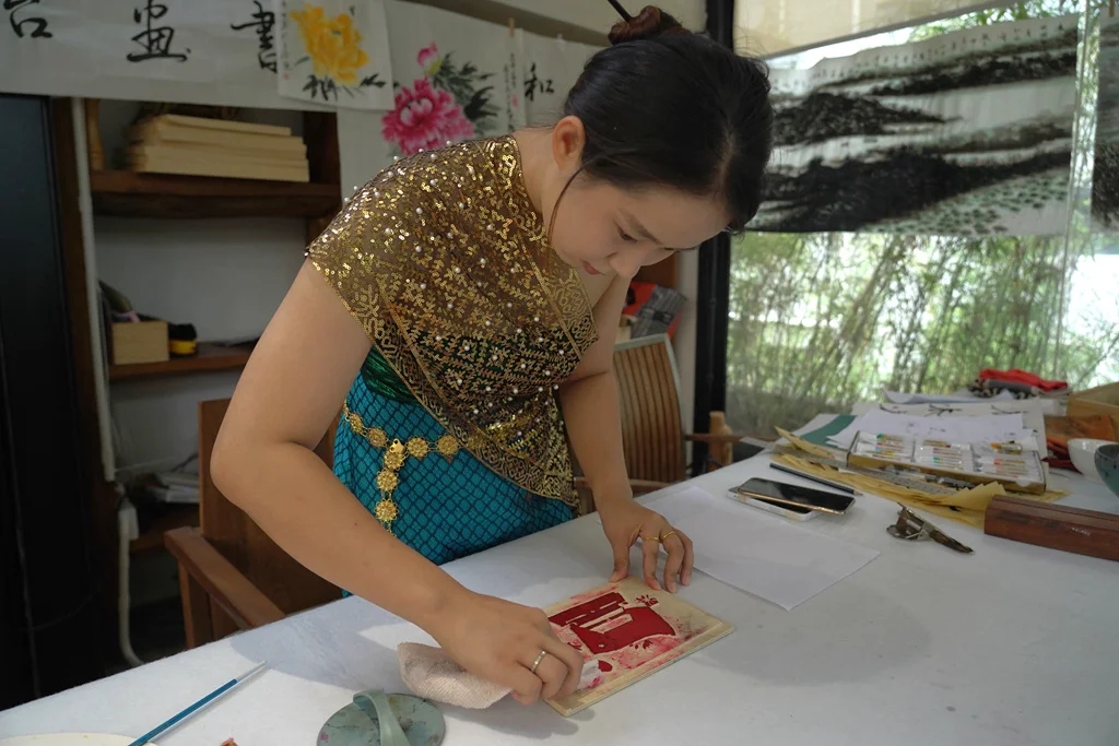 惠州五合院民宿內(nèi),每天前20名到店消費即可獲得5折非遺版畫體驗。