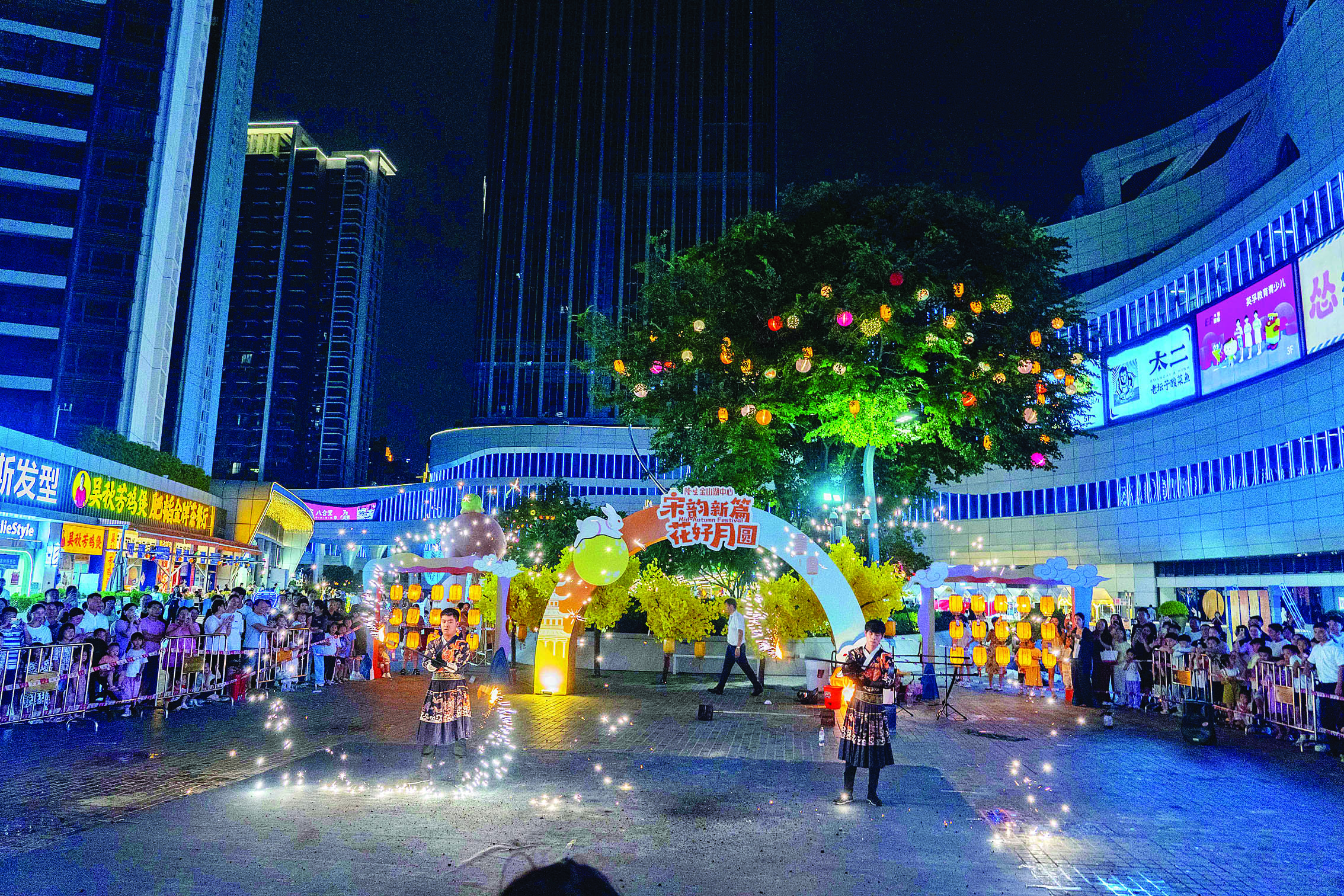 商圈的火壺表演吸引了眾多消費(fèi)者圍觀。惠州日?qǐng)?bào)記者劉煒煒 攝