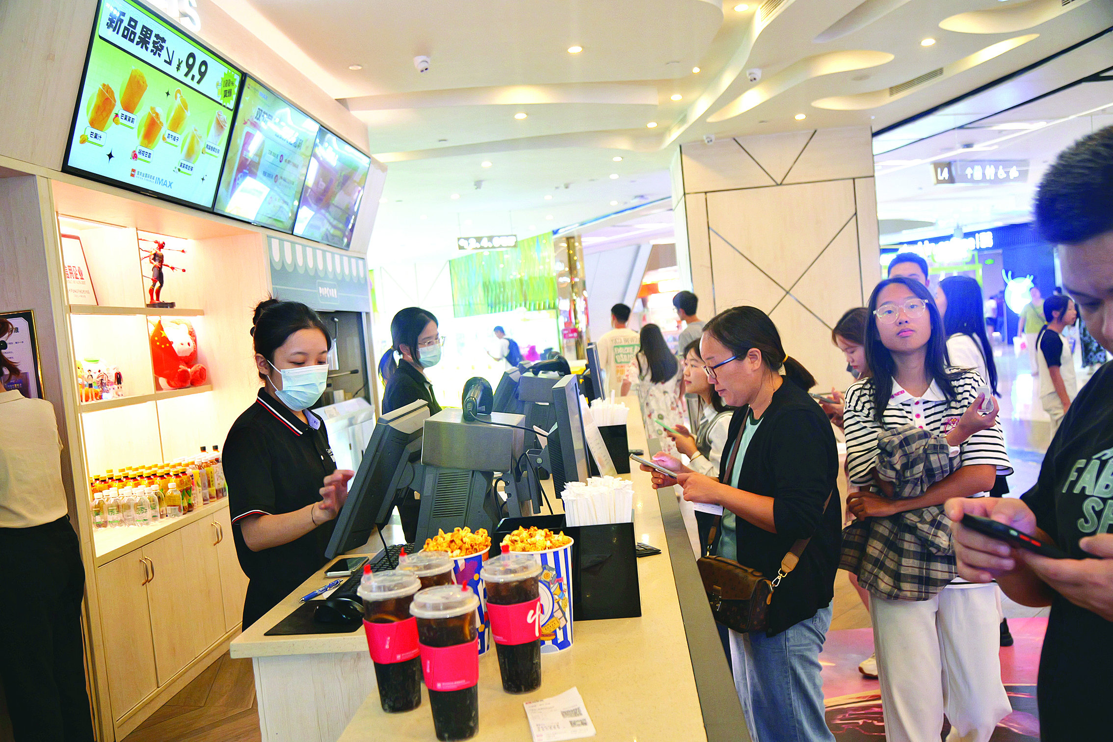 在佳兆業(yè)國(guó)際影城,市民看電影前購(gòu)買零食;葜萑?qǐng)?bào)記者黃鑫威 攝
