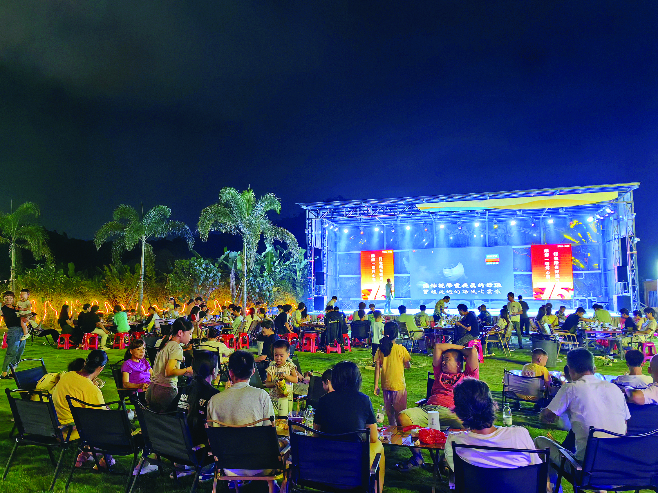 “吹著山風(fēng),聞著花香,眼前的這杯咖啡和城市里的沒有什么不同,但喝起來的味道卻真的有些不一樣!痹谌A僑星空營地,基地露營、咖啡奶茶、啤酒燒烤、戶外KTV……在初秋微涼的夜風(fēng)中,孩子們在青草地上肆意奔跑,大人們“躺平式”放松,或圍坐飲茶閑談、或上臺(tái)奏樂彈唱,將歲月靜好擁抱入懷,著實(shí)悠哉。